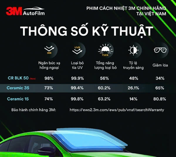 2. Phim Cách Nhiệt 3M Combine (CR & IR) - Thông số kỹ thuật chi tiết: