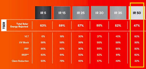 Khả Năng Cách Nhiệt Vượt Trội: Phim 3M Ceramic IR50 có khả năng cách nhiệt vượt trội, giúp duy trì nhiệt độ ổn định và thoải mái trong xe, giảm sự phụ thuộc vào hệ thống điều hòa không khí và tiết kiệm nhiên liệu.